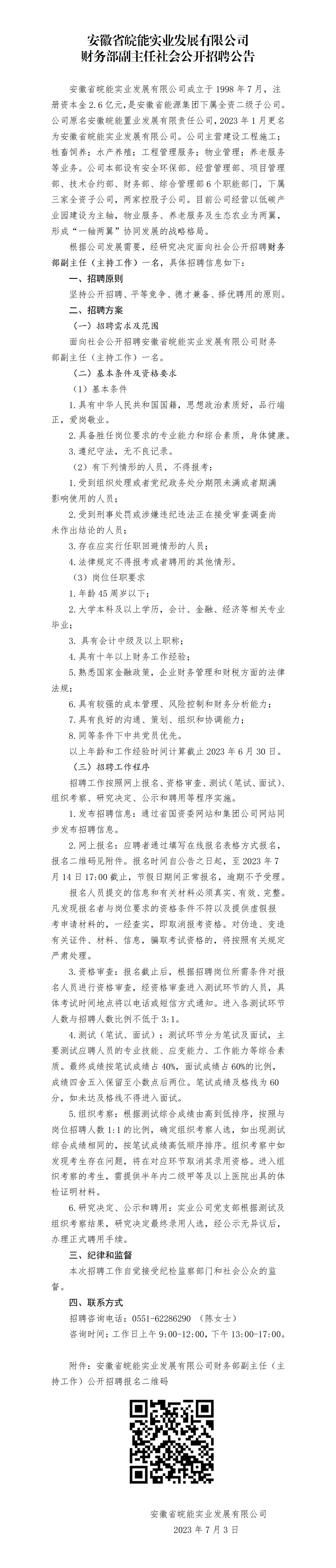 2023年安徽省皖能實業(yè)發(fā)展有限公司財務部副主任社會公開招聘公告