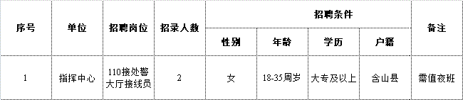 詳見附件1《含山縣公安局招聘警務(wù)輔助人員職位表》