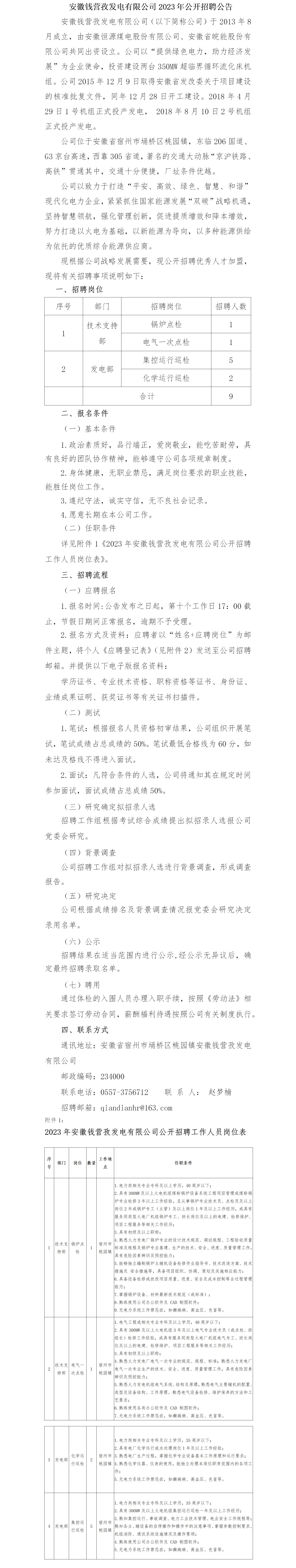 2023年宿州安徽錢(qián)營(yíng)孜發(fā)電有限公司公開(kāi)招聘公告