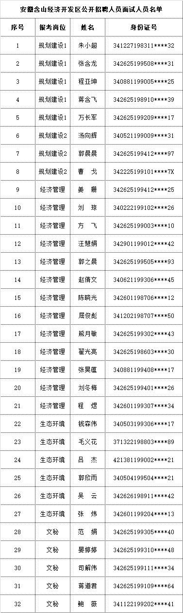 2020-06-02 17:47:59閱讀()含山縣人民政府根據(jù)《安徽含山經濟開發(fā)區(qū)公開招聘人員公告》,經報名、資格審查,現(xiàn)將進入面試人選名單及有關事項公告如下: