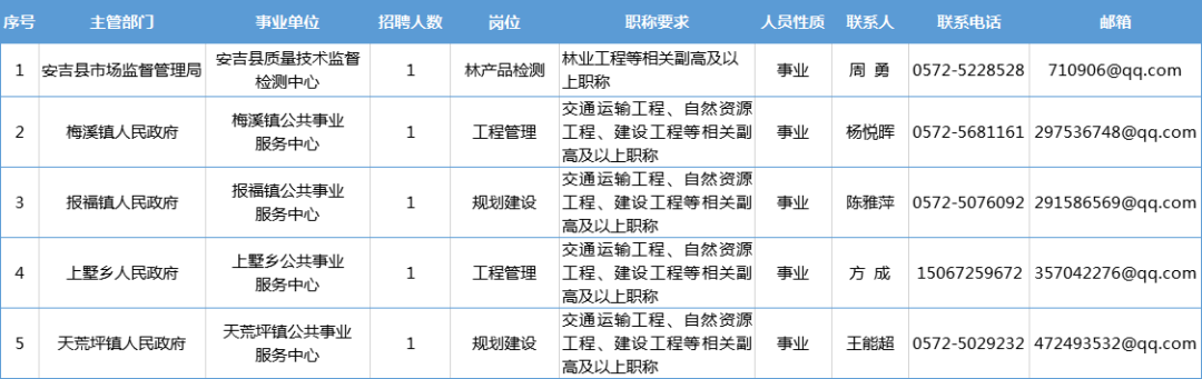引進(jìn)計(jì)劃人數(shù)5名,均為事業(yè)編制。重點(diǎn)引進(jìn)林業(yè)工程、交通運(yùn)輸工程、自然資源工程、建設(shè)工程等專(zhuān)業(yè)的緊缺急需人才。
